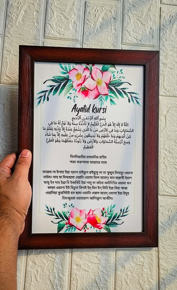 - Calligraphy: Ayatul Kursi in Arabic with translation in Bengali