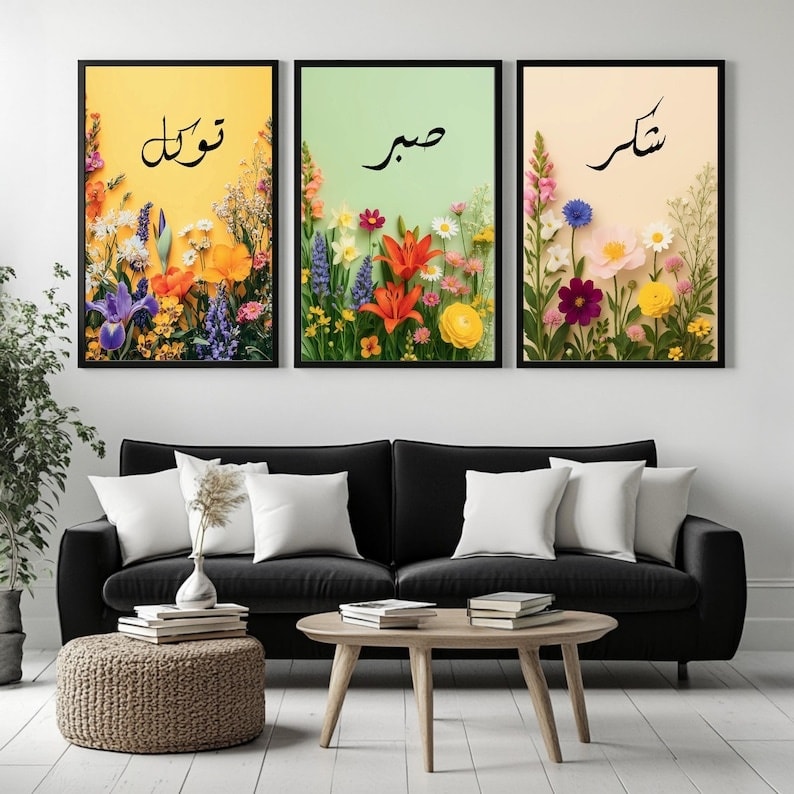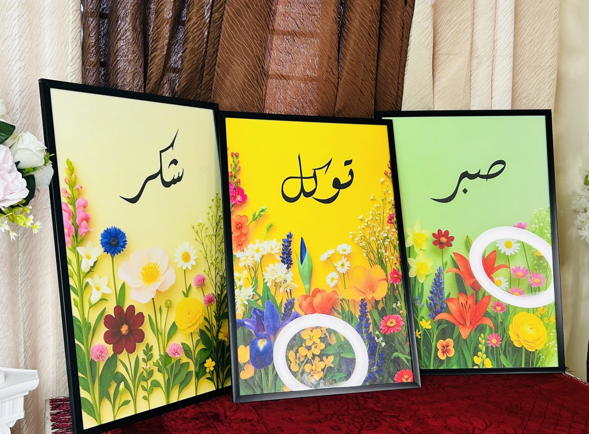 Sabr Shukr Tawakkul – Frame Set, Perfect for living rooms, offices, prayer spaces, or gifting to loved ones.